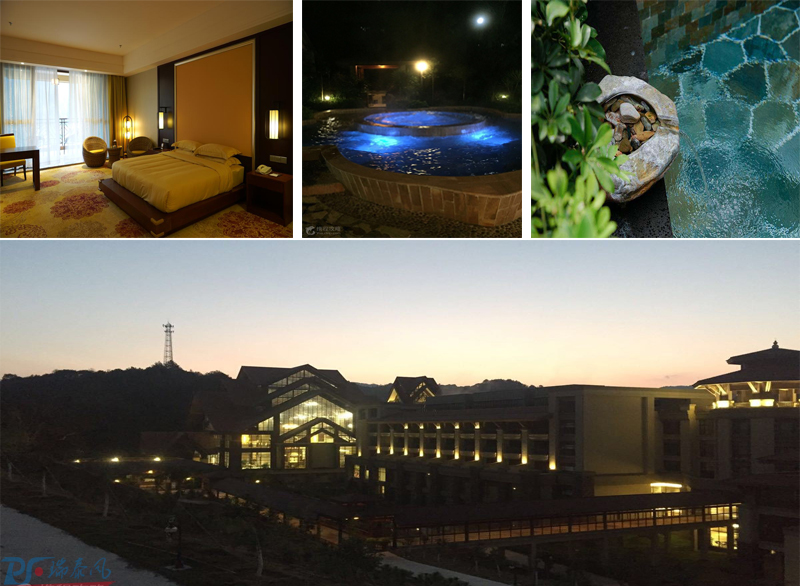 游覽了云門山,體驗(yàn)了玻璃棧道,晚上我們驅(qū)車趕往經(jīng)律論文化旅游小鎮(zhèn)溫泉度假村,其占地16.8公頃,作為一家以五星級標(biāo)準(zhǔn),并按照以“禪佛”為主題的國家級大型禪文化主題園區(qū)的標(biāo)準(zhǔn)打造的高規(guī)格酒店,園區(qū)內(nèi)集【禪修、溫泉、度假、養(yǎng)生】為一體,充分利用已有的天然氡溫泉資源、優(yōu)美清幽山景,完整詮釋自然之美,突出以【禪文化】為特色的核心理念。不得不說,這里的夜景真的非常漂亮,燈光點(diǎn)綴著的旅游小鎮(zhèn)就像是一座迷人的城堡。作為美名遠(yuǎn)揚(yáng)的溫泉酒店,來這里肯定要體驗(yàn)溫泉的,燈光和霧氣映襯下的溫泉池有種異樣的美,美的很朦朧也很溫暖!